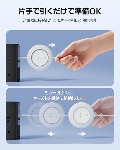 お手頃価格で急速充電できるモバイルバッテリーと、巻取り式ケーブル